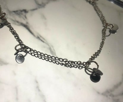 het is een ketting, gemaakt van jasseron en dat is dus een heel erg stevig materiaal! ook is die handgemaakt en van hele goede kwaliteit. er zit een slotje aan en is heel erg leuk te combineren met andere sieraden!